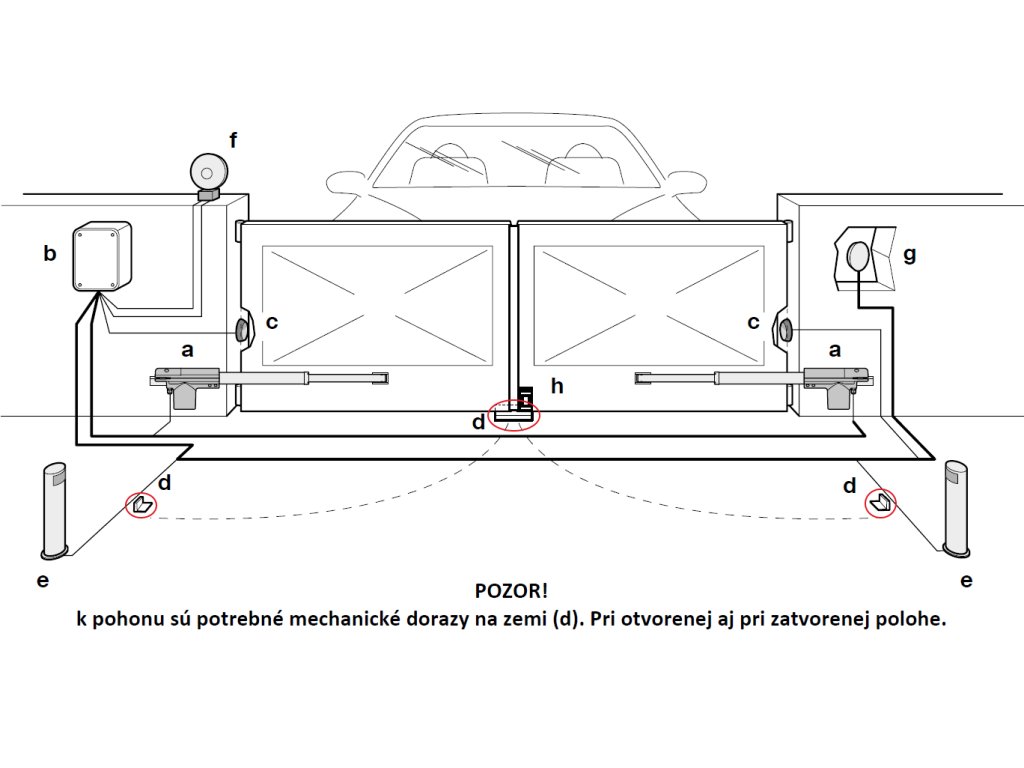 - 2x TOO3000 motory (230V, 340W, 2000N) – Teleskopické pohony navržené pro křídlové brány s maximální šířkou křídla 3 m a hmotností do 300 kg.