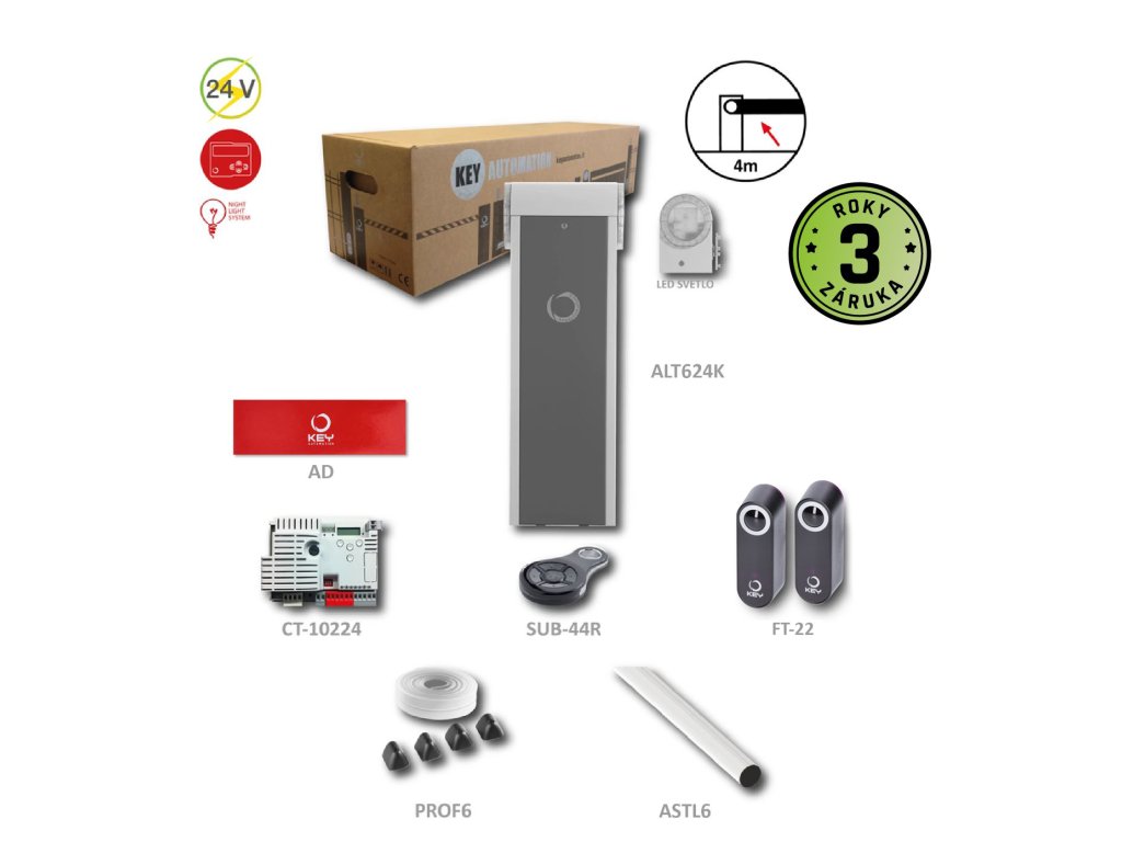 Závora do 6m se zabudovaným majákem a příslušenstvím CT-10224