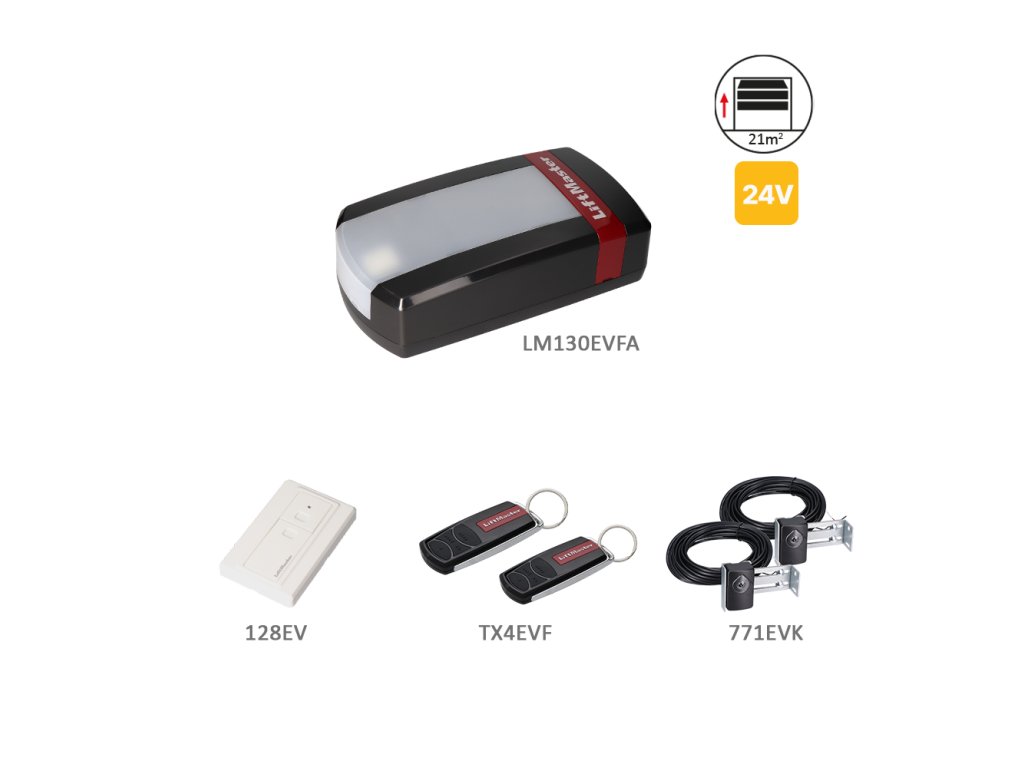 LiftMaster LM130EVFA je tichý, rychlý a spolehlivý pohon pro sekční garážová vrata do hmotnosti 200 kg a rozměrů až 6,0 m (šířka) × 3,5 m (výška). Pohon pracuje na 24 V DC a poskytuje maximální zdvihovou sílu 1300 N. Díky modernímu designu, nízké hlučnosti (Doplňkové parametry