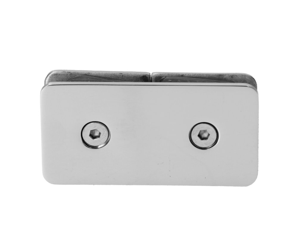 Svorka skla na skleněný dveřní systém, mezi sklo a sklo 180°, 45x45x16mm, tloušťka skla 8-10mm, leštěná nerez K320/AISI304