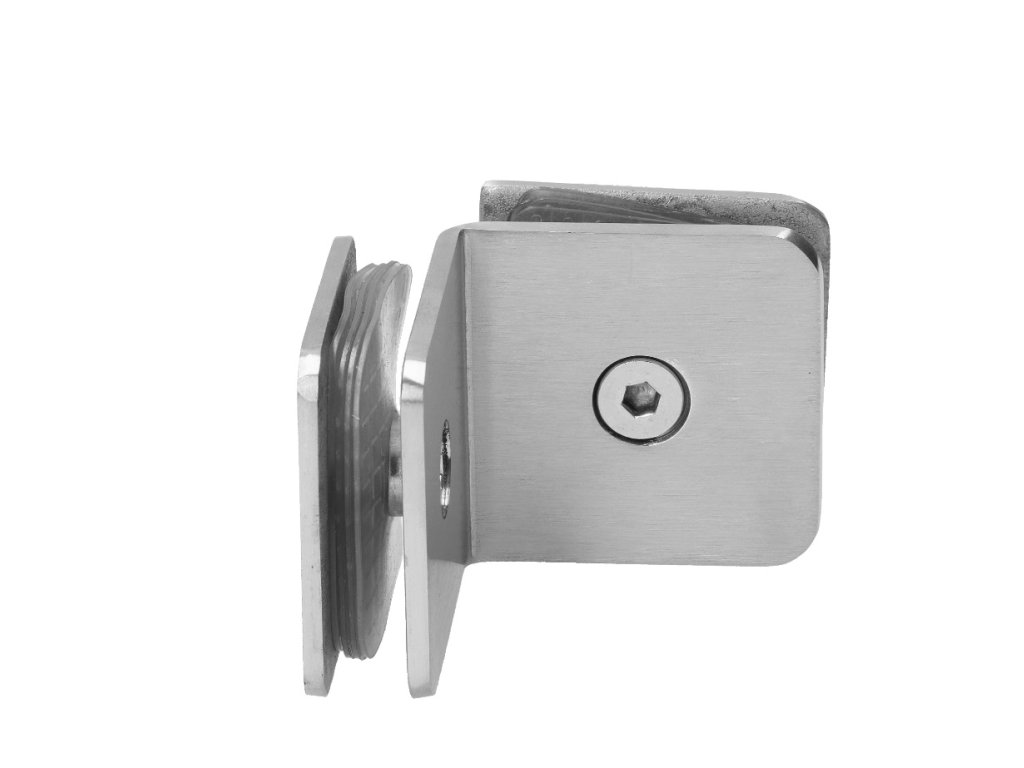 Svorka skla na skleněný dveřní systém, mezi sklo a sklo 90°, 45x45mm, tloušťka skla 8-10mm, broušená nerez K320/AISI304