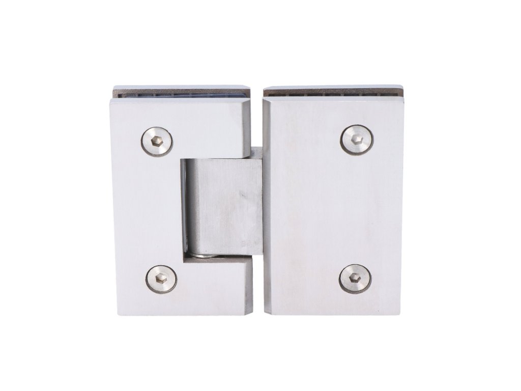 Závěs na skleněný dveřní systém mezi sklo a sklo, 90x112x62mm, tloušťka skla 8-10mm, broušená nerez K320/AISI304, samouzavírání +-15° a samozastavení +-90°-0°Doplňkové parametry