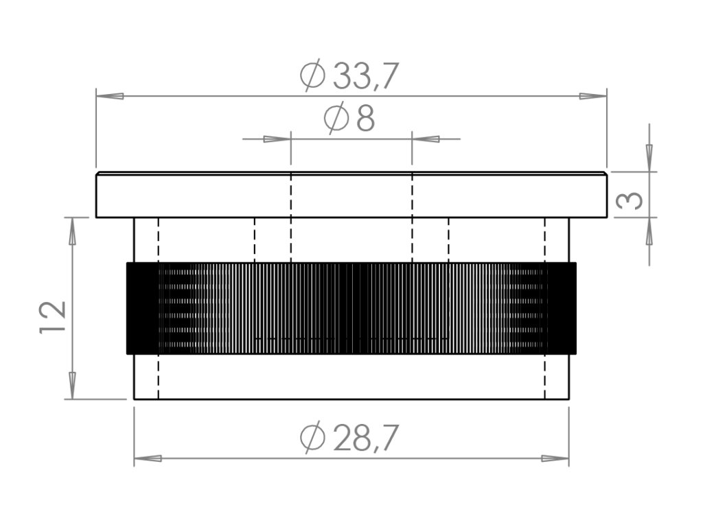 Spodek držáku madla (závit M8) na trubku ø 33,7 mm, broušená nerez K320 / AISI304Doplňkové parametry