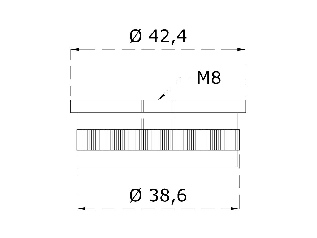 Spodek držáku madla (závit M8) na trubku ø 42,4 mm, broušená nerez K320 / AISI304Doplňkové parametry