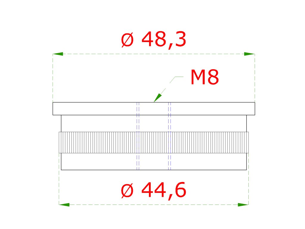 Spodek držáku madla (závit M8) na trubku ø 48,3 mm, broušená nerez K320 / AISI304Doplňkové parametry