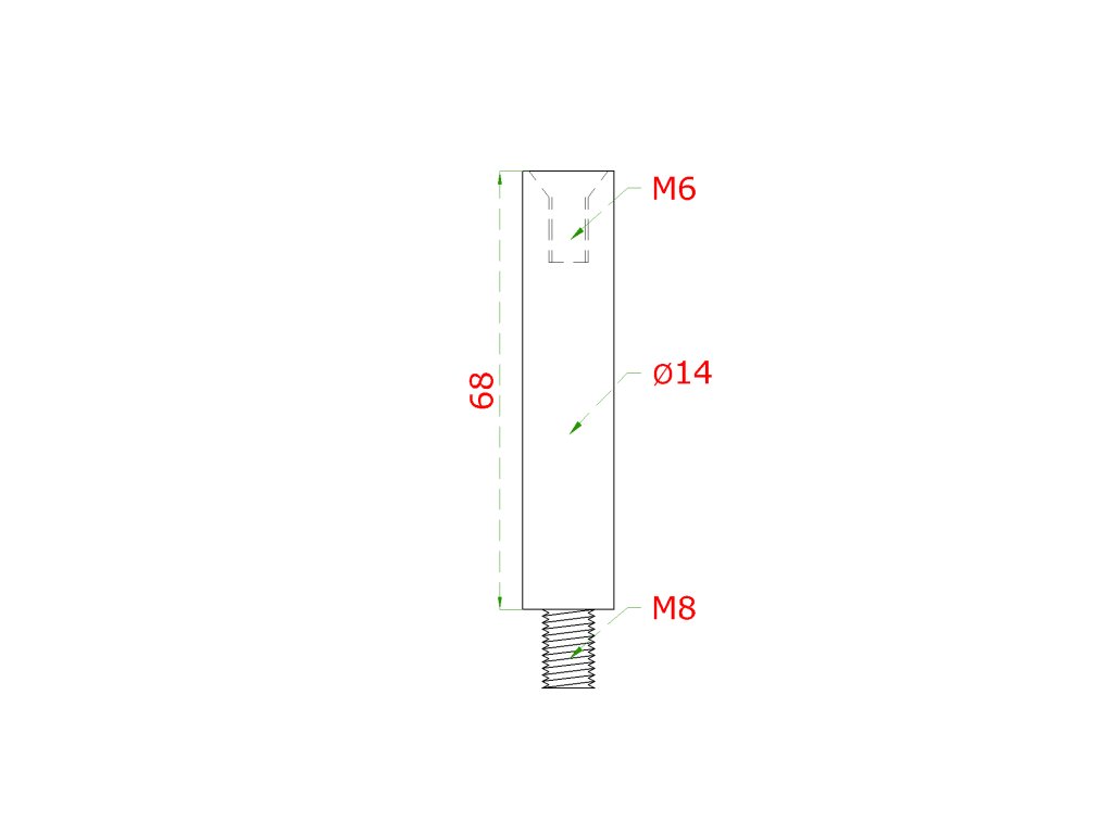 Čep (vnější závit M8 - vnitřní závit M6, ø 14 mm, L: 68 mm), broušená nerez K320 / AISI304Doplňkové parametry