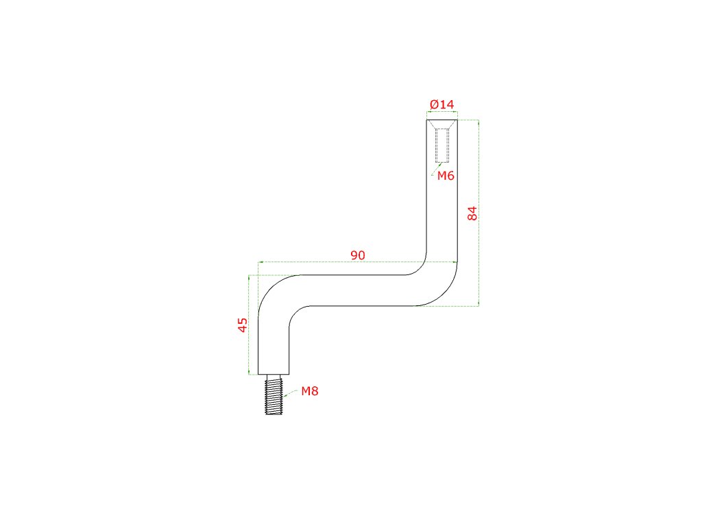Čep mimo osový (vnější závit M8 - vnitřní závit M6, ø 14mm, L: 75mm), broušená nerez K320 / AISI304Doplňkové parametry