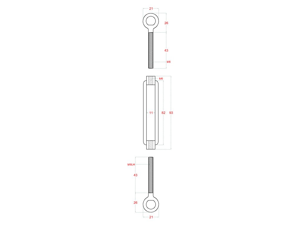 Napínák s oky se závitem M6 a LH6, nerez AISI304Doplňkové parametry