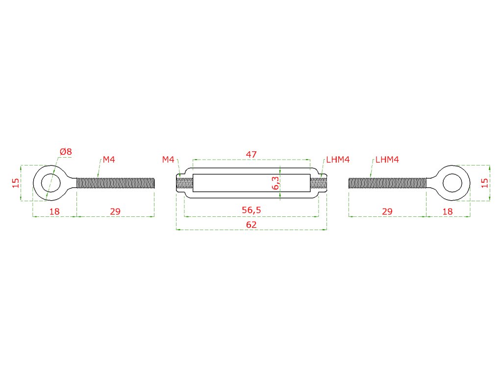 Napínák s oky se závitem M4 a LH4, nerez AISI304Doplňkové parametry