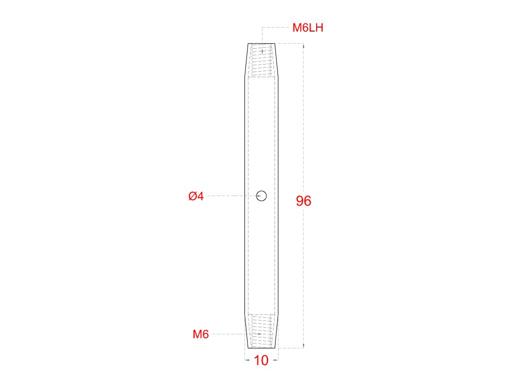 Tělo šponováku pro nerezové lanko, se závitem M6 a LH6, broušená nerez K320/ AISI304Doplňkové parametry