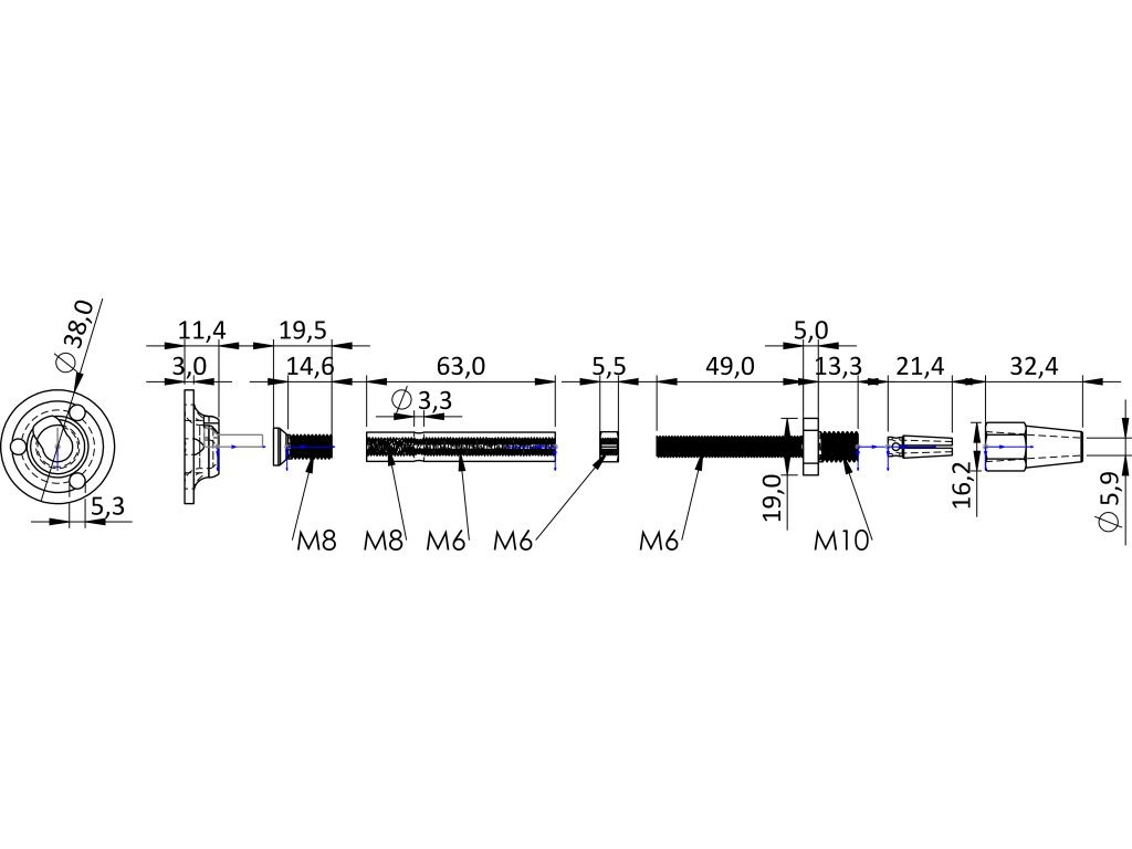 Úchyt, napínák pro lanko ø 4 mm, broušená nerez AISI 316