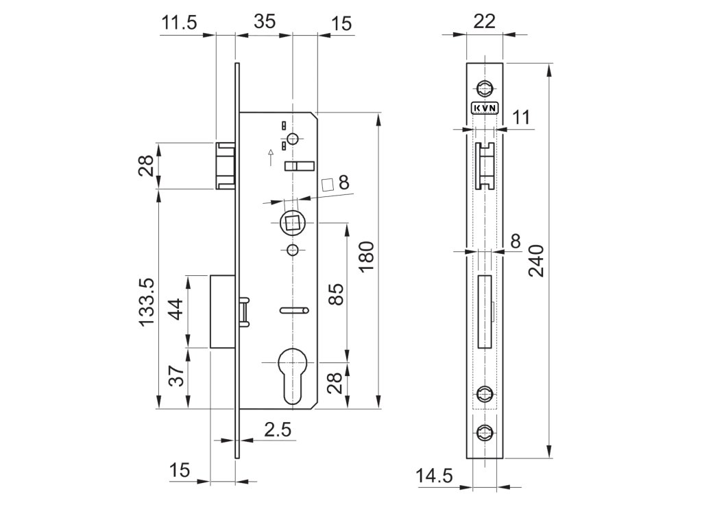 Zámek vložkový, hloubka 50 mm, rozteč 85 mm