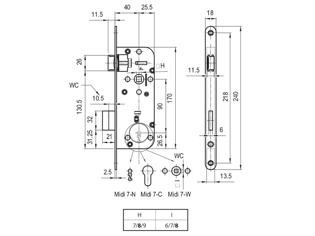 Zámek vložkový, hloubka 65 mm, rozteč 90 mm