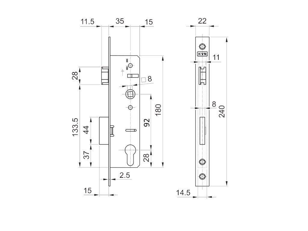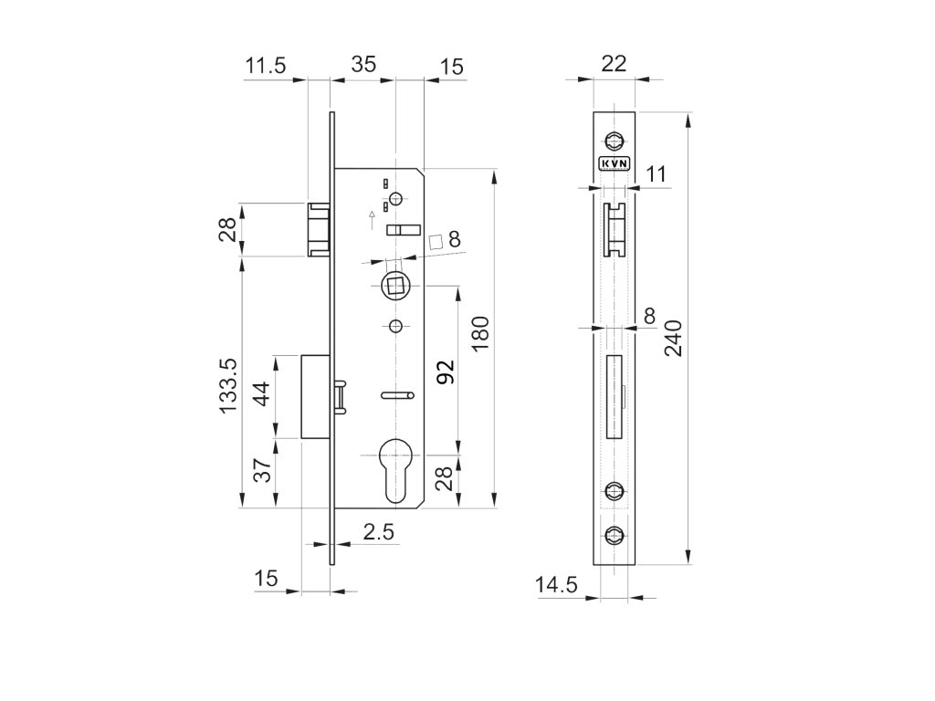 Zámek vložkový, zádlab 50 mm, rozteč 92 mm