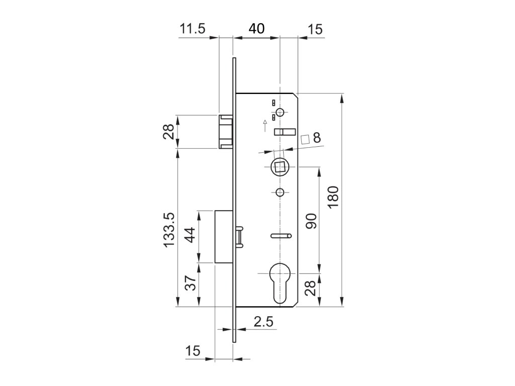 Zámek vložkový, zápust 55mm, rozteč 90mm, poniklovaná lišta