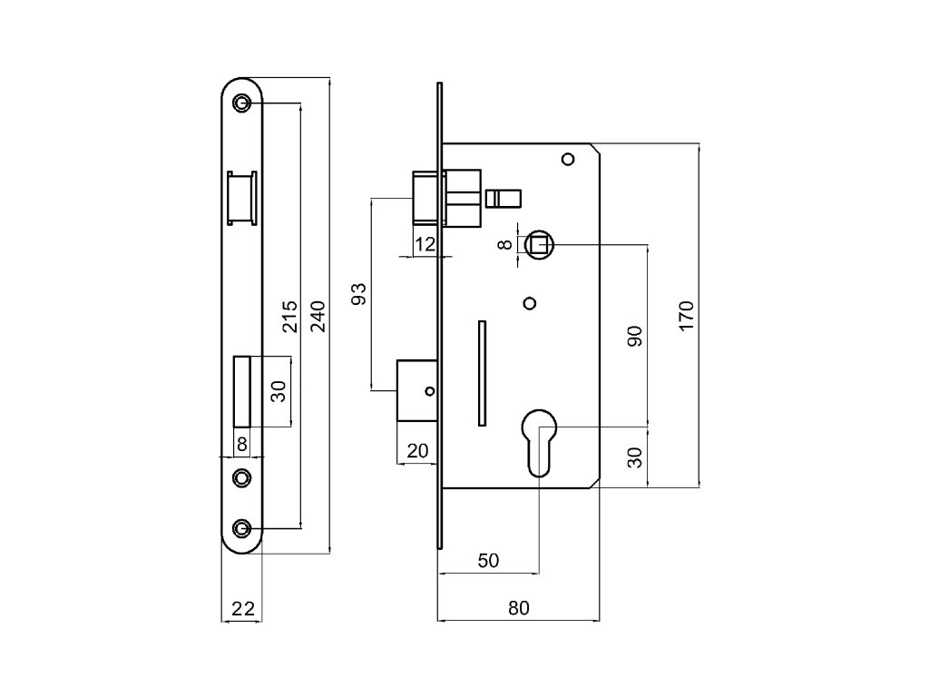 Zámek vložkový, zádlab 80 mm, rozteč 90 mm