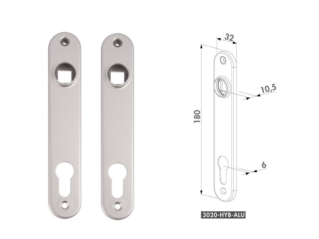 LOCINOX® krycí štítek s otvorem pro kliku a cylindrickou vložku, rozteč 92 mm, materiál: hliník, cena za PÁR