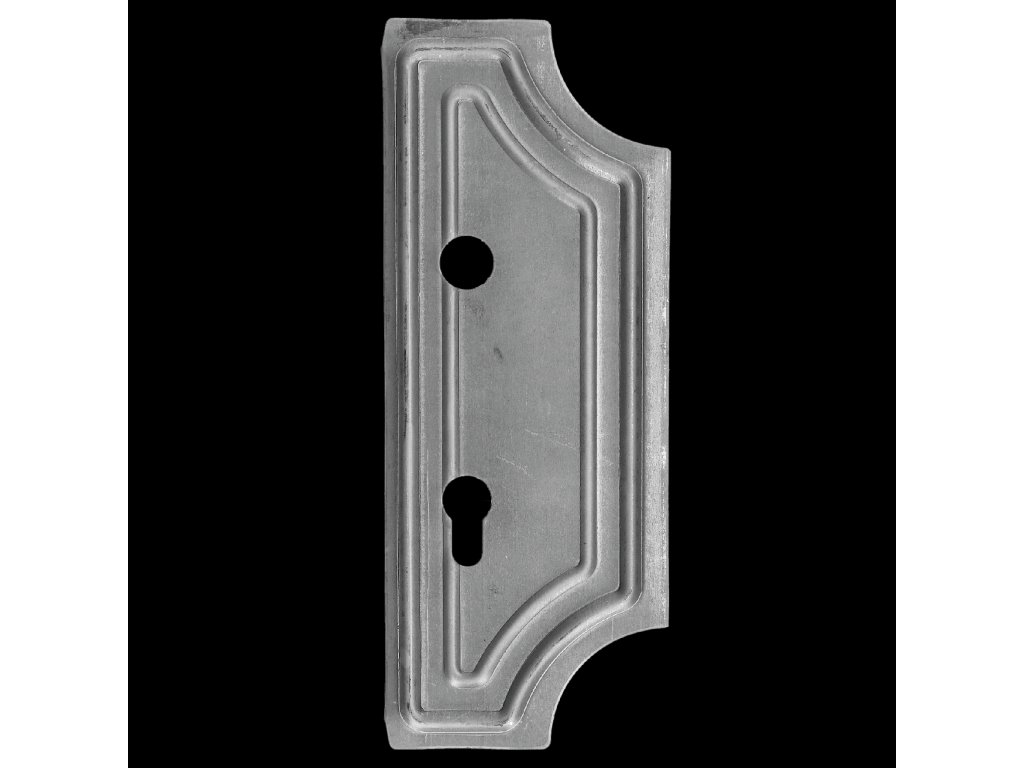 Štít 277x104x2mm s otvory, rozteč 90mm, zápust 30mm, otvor pro kliku ø 20mm, zdobený, pravý
