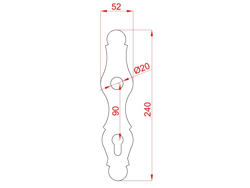 Štítek kovaný H 240 x L 52 mm, rozteč děr 90 mm