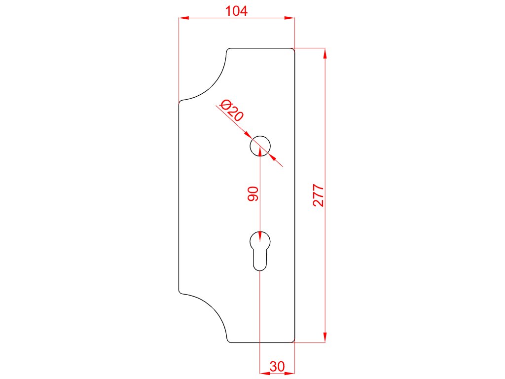 Štítek s otvory na dveře-kovaný 277x104x2mm, rozteč 90mm, zápust 30 mm, díra ø20 mm, levý