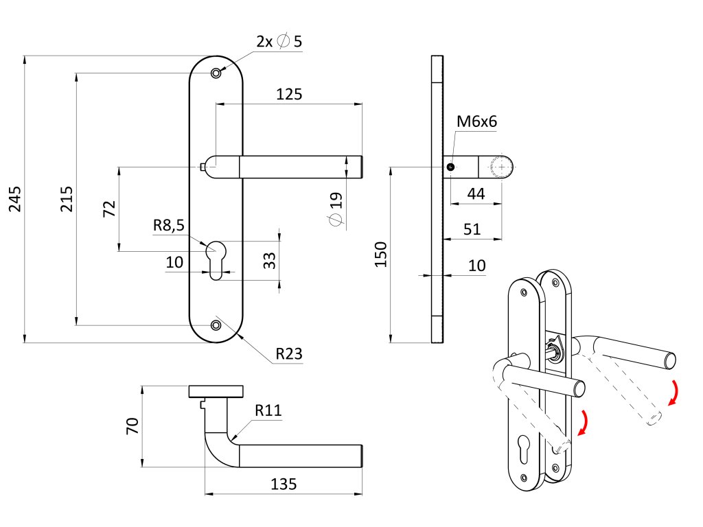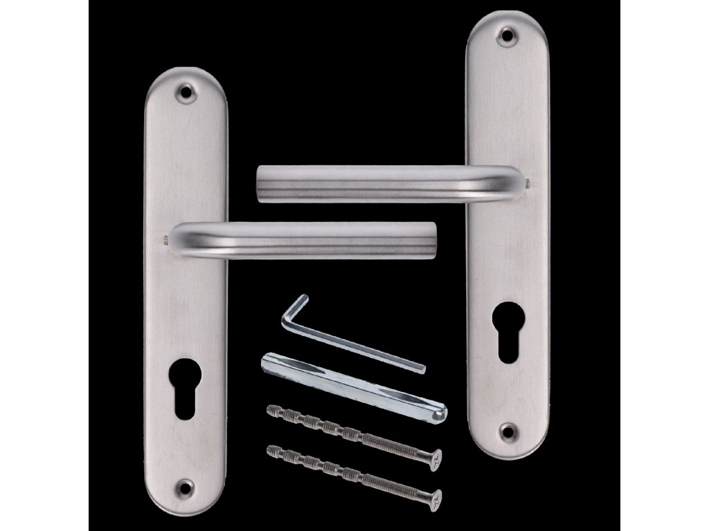 štítová klika (pár) na oválných štítech, balení: 2ks štítová klika, broušená nerez K320/AISI304