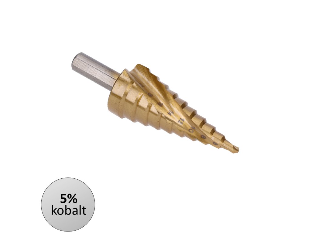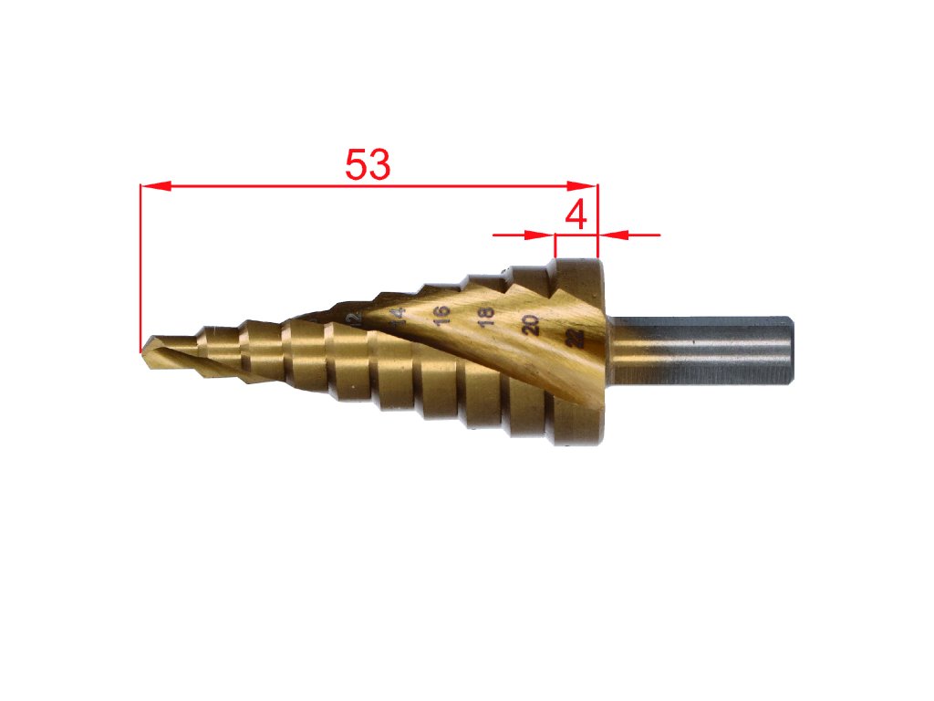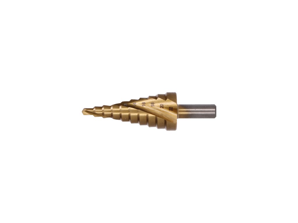 stupňovitý kuželový vrták HSS M35 TiN 4-22, 3 ploché boční úchopy