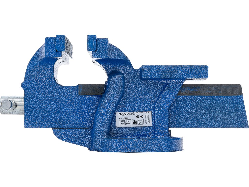 BGS - Paralelní svěrák | upínací čelisti 125 mm, 2 otvory pro upevnění Ø 8 mm, rozteč otvorů 95 mmUpínací čelisti: Čelisti svěráku mají šířku 125 mm, což umožňuje pevné a bezpečné upnutí různých materiálů.