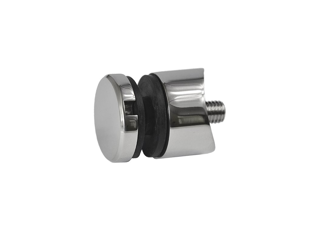 Svorka bodová (ø 30 mm / M8) na sklo 6-12 mm na trubku ø 42,4 mm, leštěná nerez / AISI304, balení obsahuje gumičky na sklo