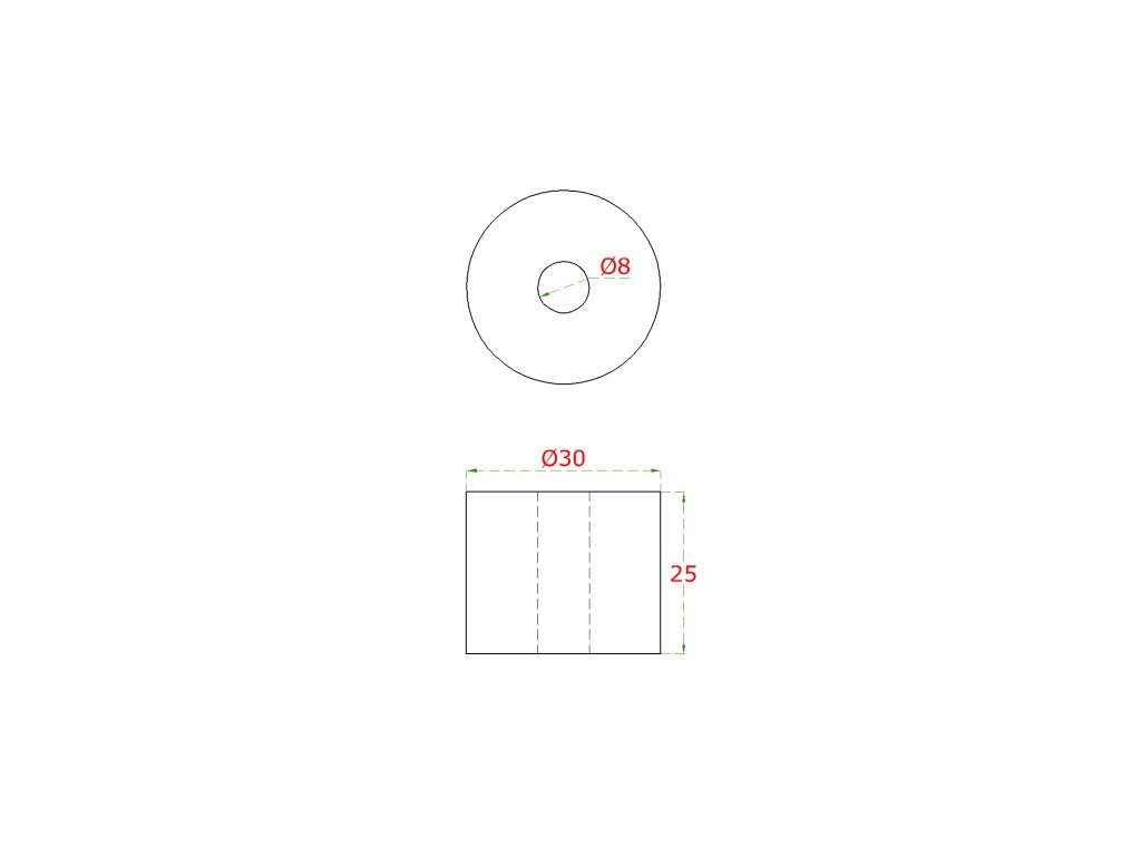 Přechod na vymezení vzdálenosti, ø 30mm /ø 8mm /L: 25mm, broušená nerez K320 /AISI304, bal: 1ks