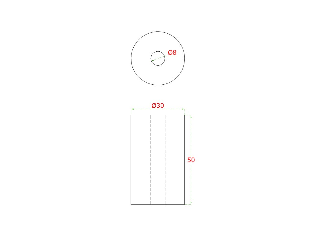 Přechod na vymezení vzdálenosti, ø 30mm /ø 8mm /L: 50mm, broušená nerez K320 /AISI304, bal: 1ks