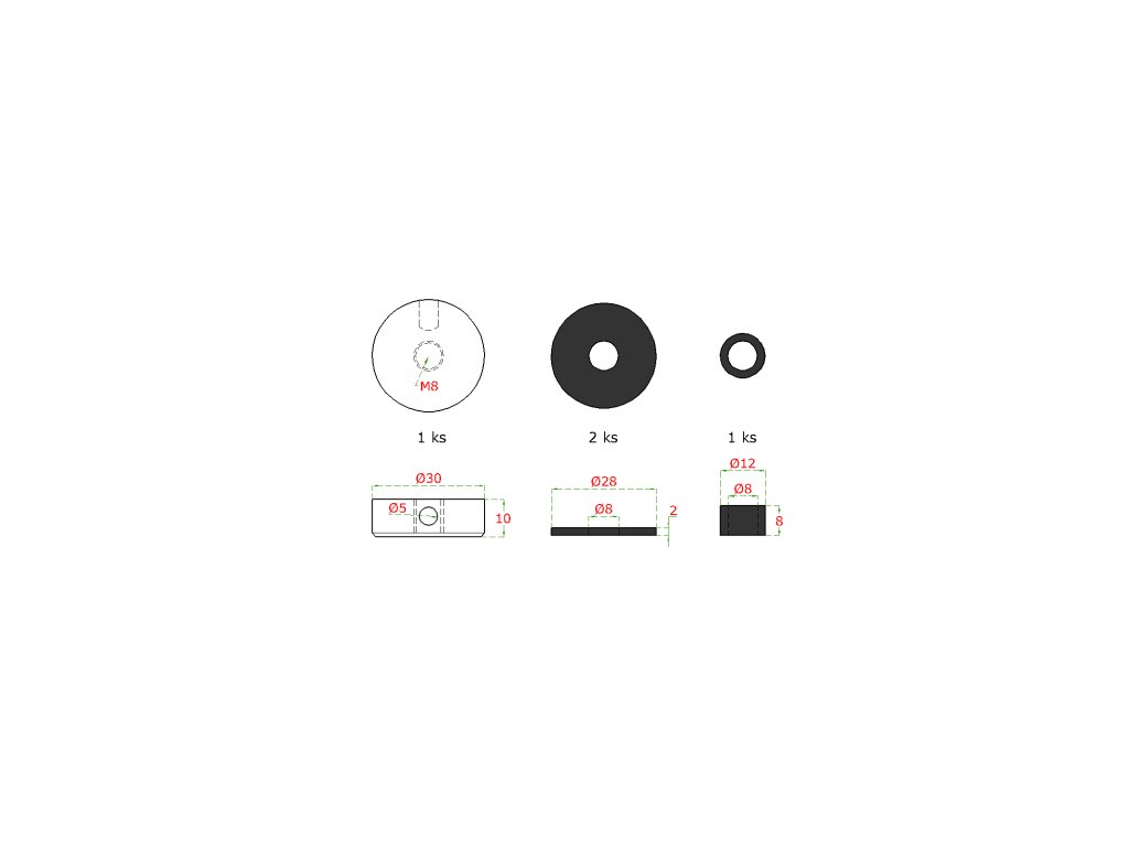 Vrchní úchyt (ø 30mm / M8), broušená nerez K320 /AISI304, 2 x gumené těsnění, 1 x gumený kroužekDoplňkové parametry