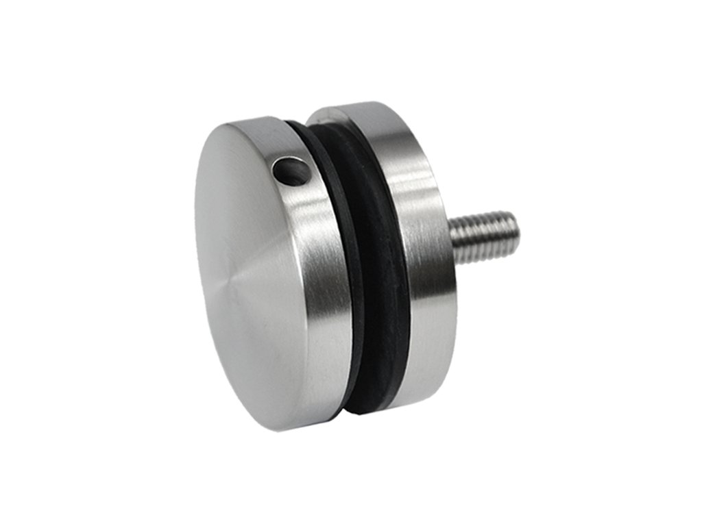 Svorka bodová na sklo 8-16 mm plochá (ø50mm/ M8), broušená nerez K320/ AISI304, balení obsahuje gumičky na sklo