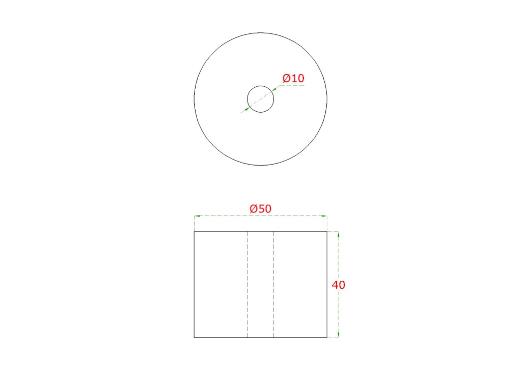 Přechod na vymezení vzdálenosti, ø 50mm /ø 10mm /L: 40mm, broušená nerez K320 /AISI304, bal: 1ks