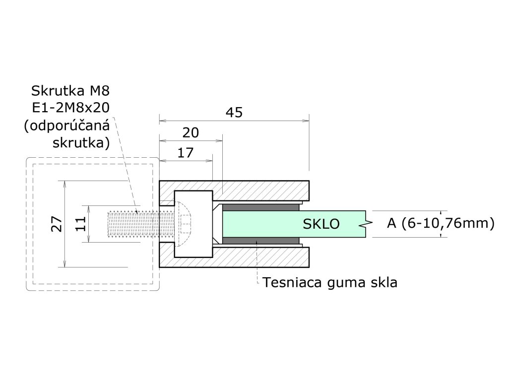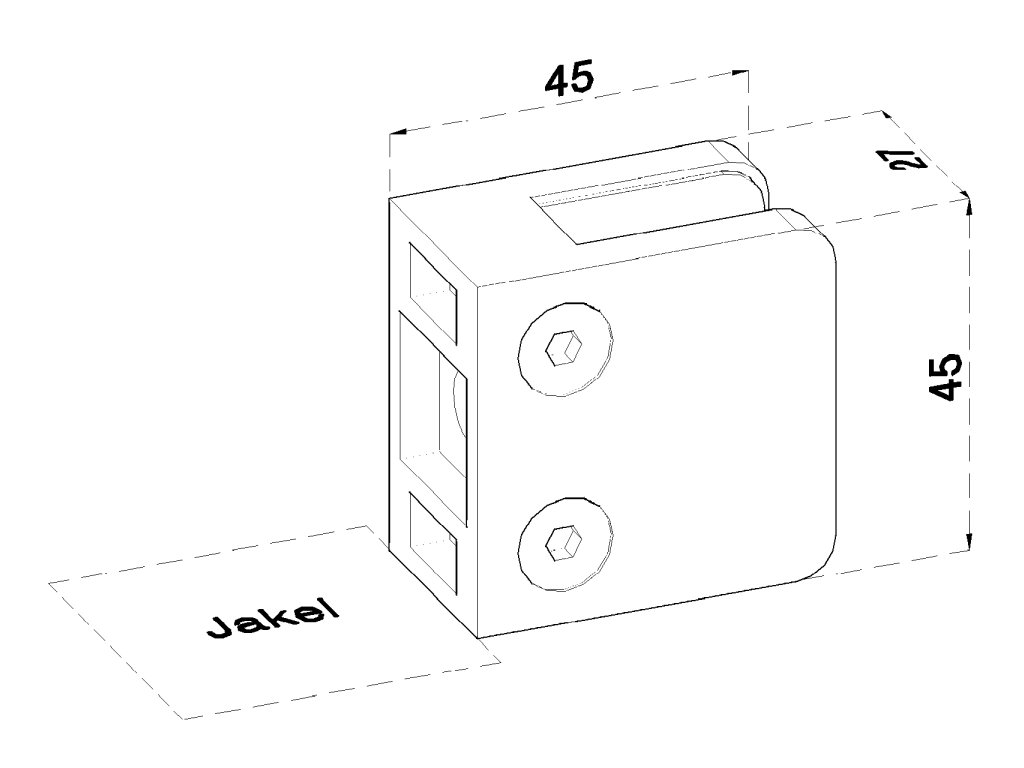 ZAMAK svorka skla plochá (45x45x27 mm) materiál: slitina AL / ZN, bez povrchové úpravy (možnost lakování), balení neobsahuje gumičky na skloDoplňkové parametry