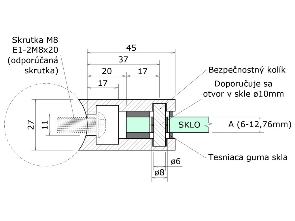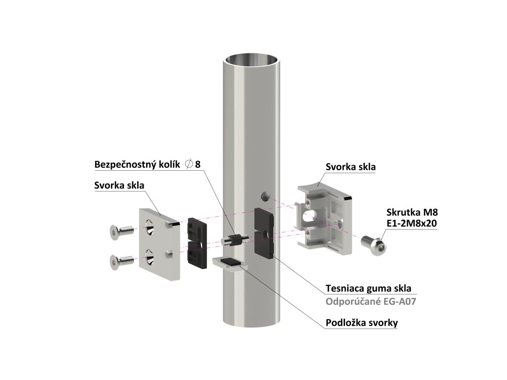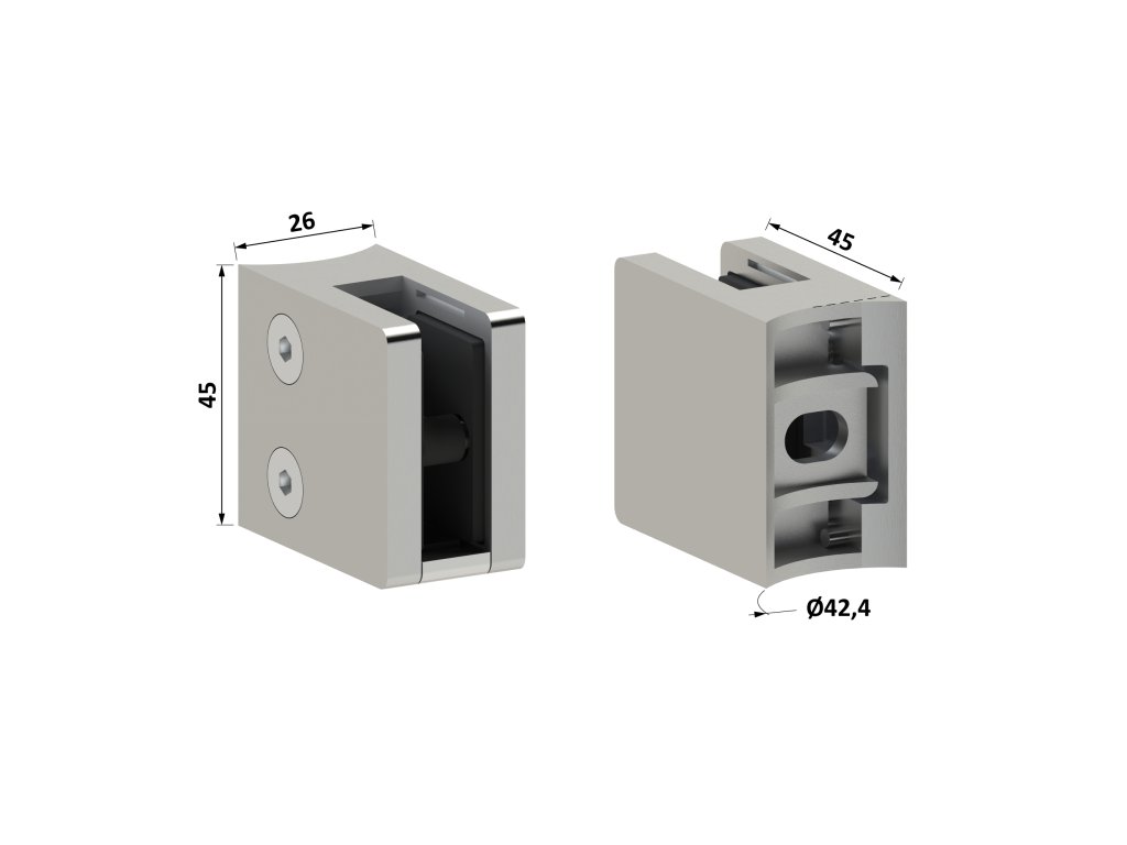 Svorka skla na trubku ø 42,4 mm (45x45x27 mm) se spodní podložkou, broušená nerez K320 /AISI304, balení neobsahuje gumičky na skloDoplňkové parametry