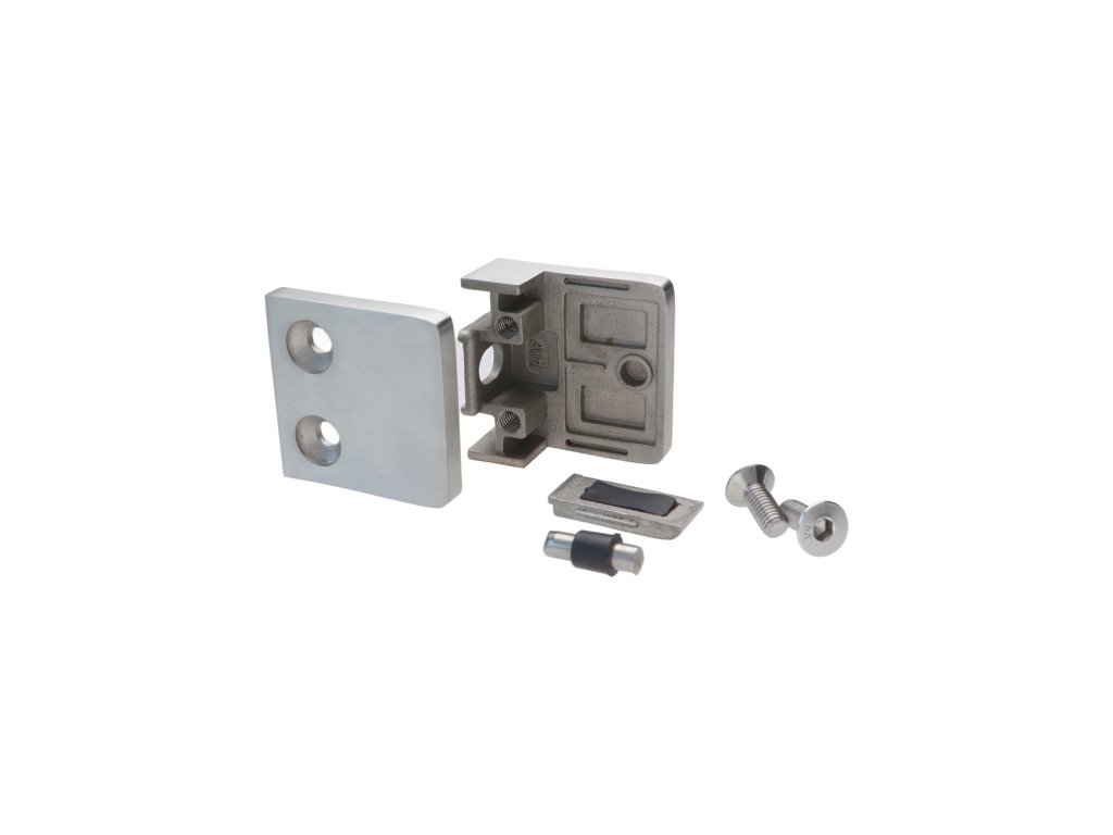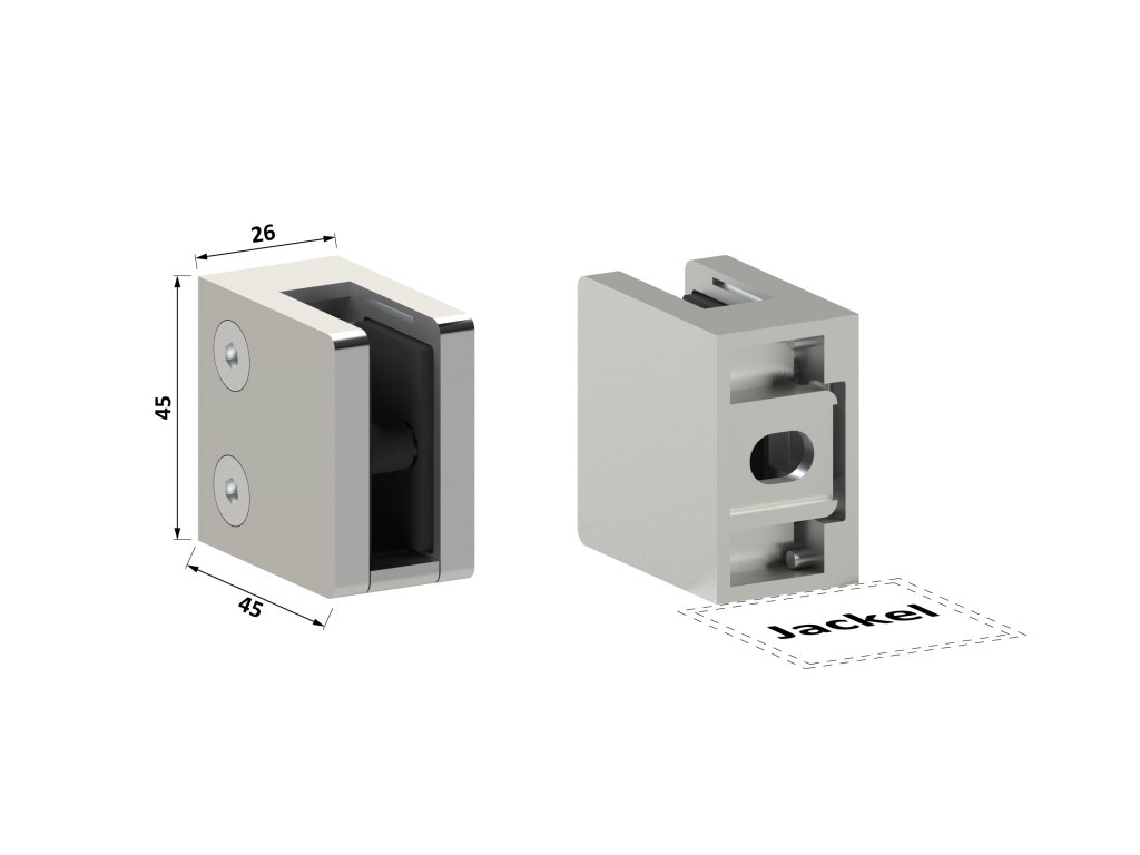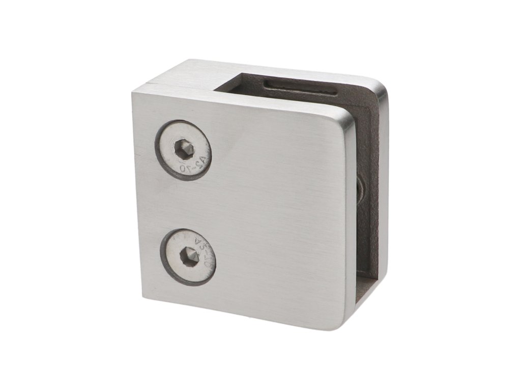 Svorka skla plochá (45x45x27mm) se spodní podložkou, broušená nerez K320 /AISI304, balení neobsahuje gumičky na sklo