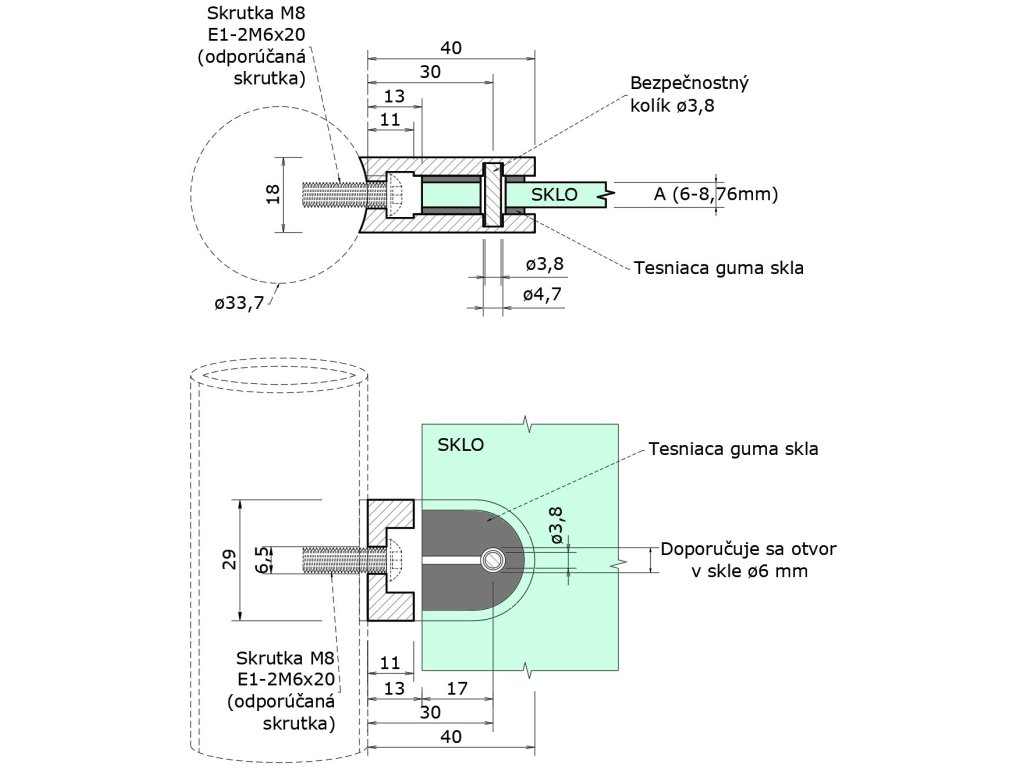 Svorka skla na trubku ø 33,7 mm (39x26x17 mm), broušená nerez K320 /AISI304, balení neobsahuje gumičky na skloDoplňkové parametry