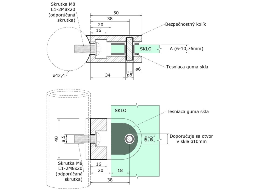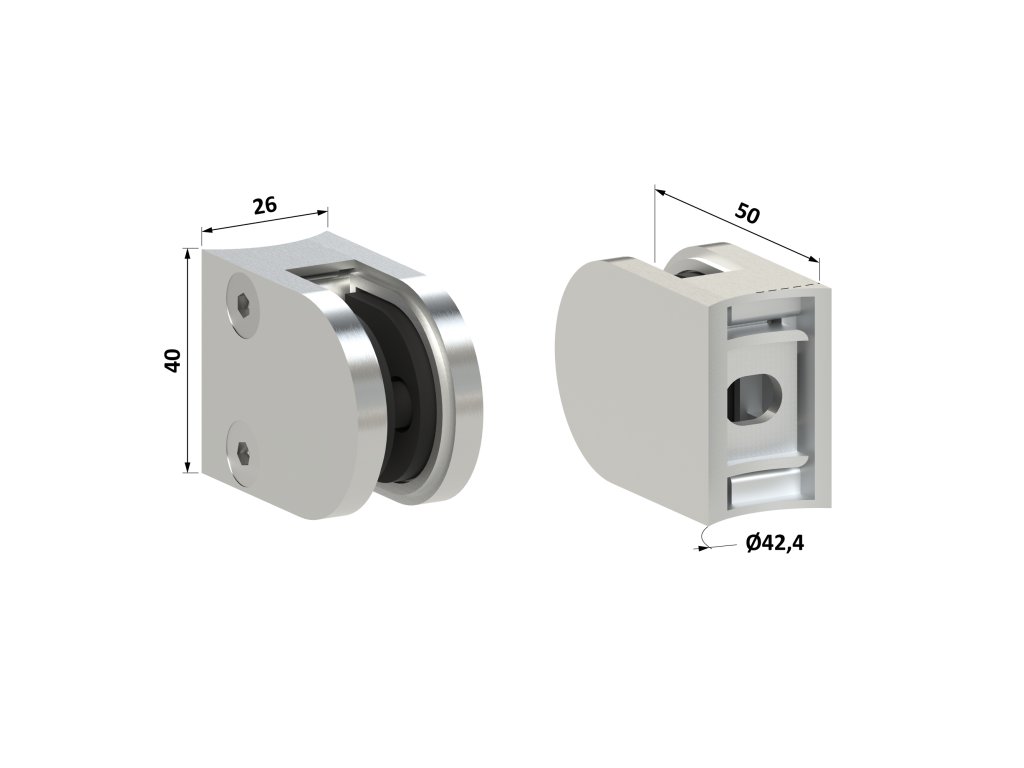 Svorka skla na trubku ø 42,4 mm (50x40x26 mm), broušená nerez K320 / AISI304, balení neobsahuje gumičky na skloDoplňkové parametry