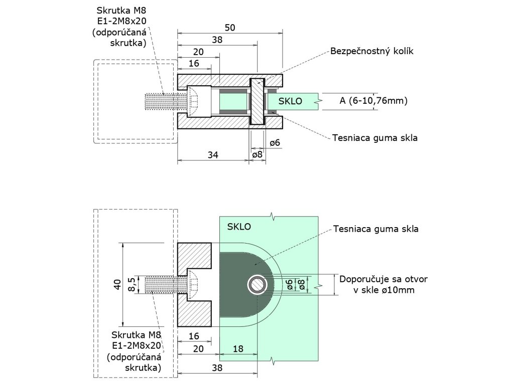 Svorka skla plochá (50x40x26 mm), broušená nerez K320 / AISI316, balení neobsahuje gumičky na skloDoplňkové parametry