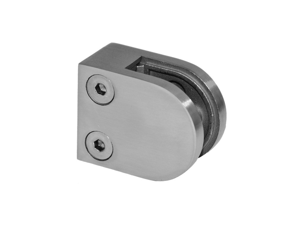 Svorka skla plochá (50x40x26 mm), broušená nerez K320 / AISI316, balení neobsahuje gumičky na sklo