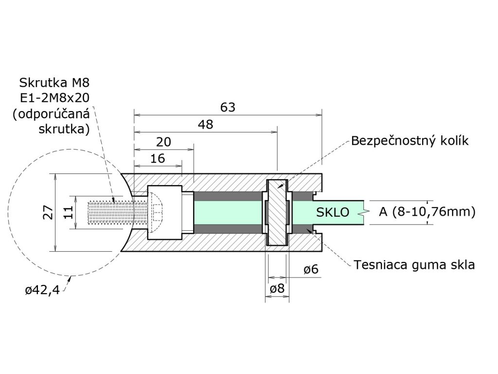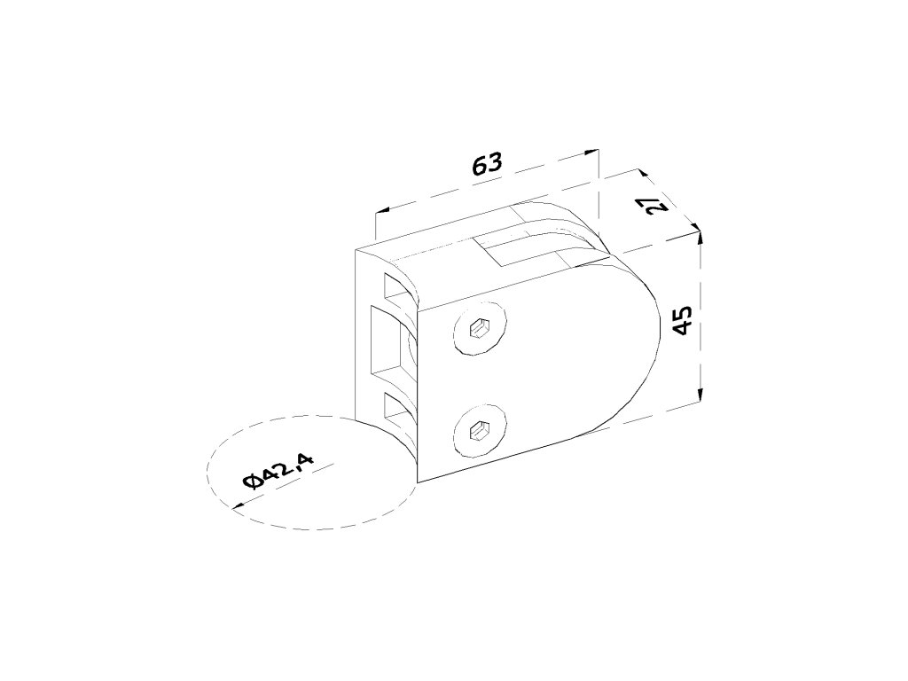 Svorka skla na trubku ø 42,4 mm (63x45x27 mm), broušená nerez K320 / AISI304, balení neobsahuje gumičky na skloDoplňkové parametry