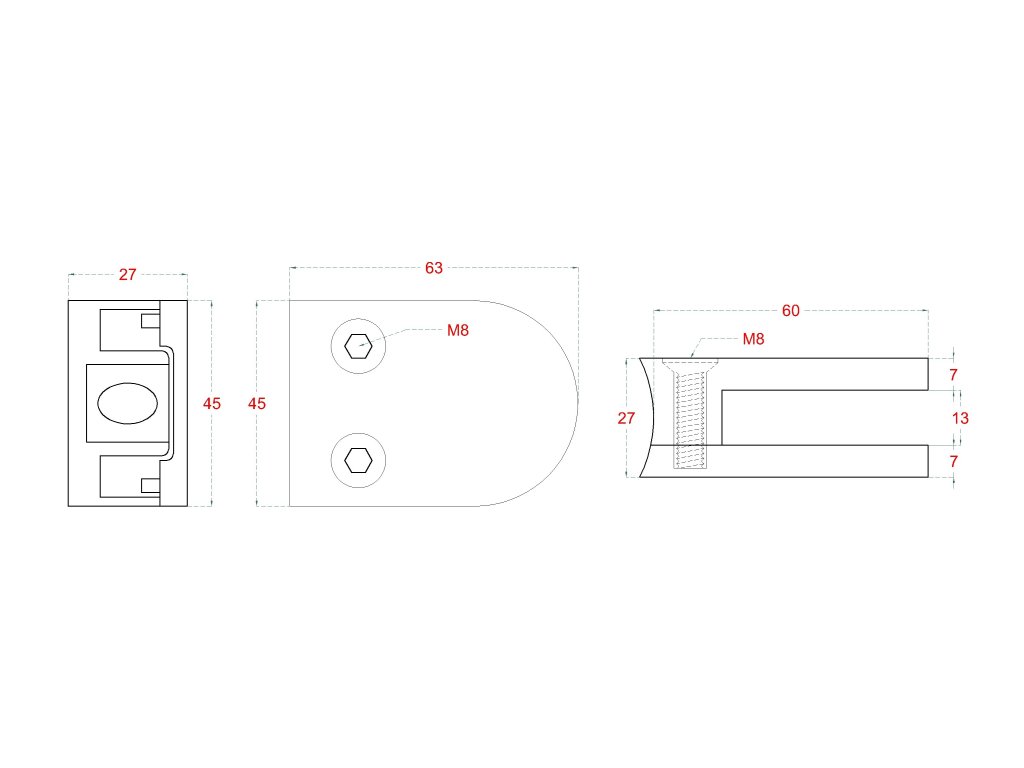 Svorka skla na trubku ø 42.4mm (63x45x27mm), leštěná nerez /AISI304, balení neobsahuje gumičky na skloDoplňkové parametry