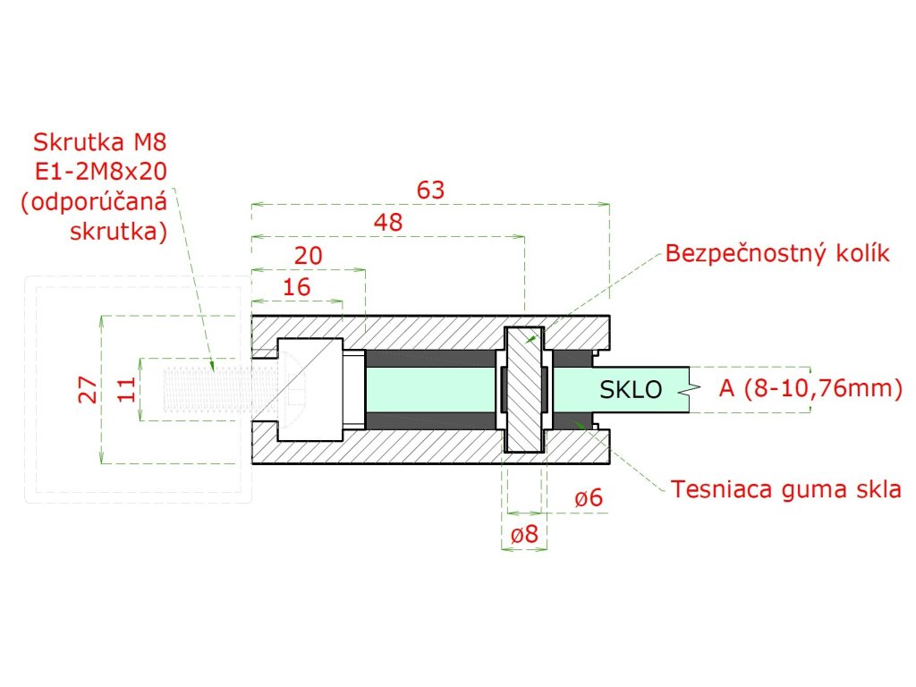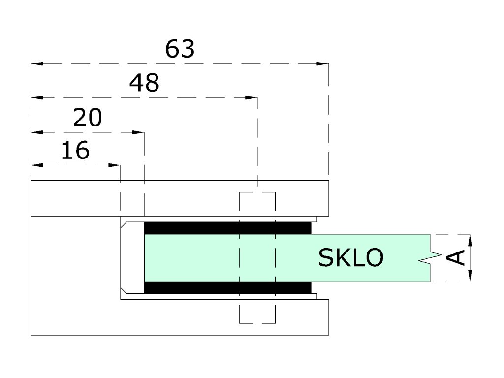 Svorka skla plochá (63x45x27 mm), broušená nerez K320 / AISI304, balení neobsahuje gumičky na skloDoplňkové parametry