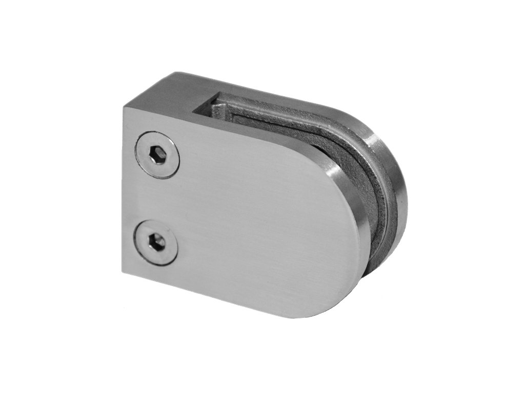 Svorka skla plochá (63x45x27 mm), broušená nerez K320 / AISI304, balení neobsahuje gumičky na sklo