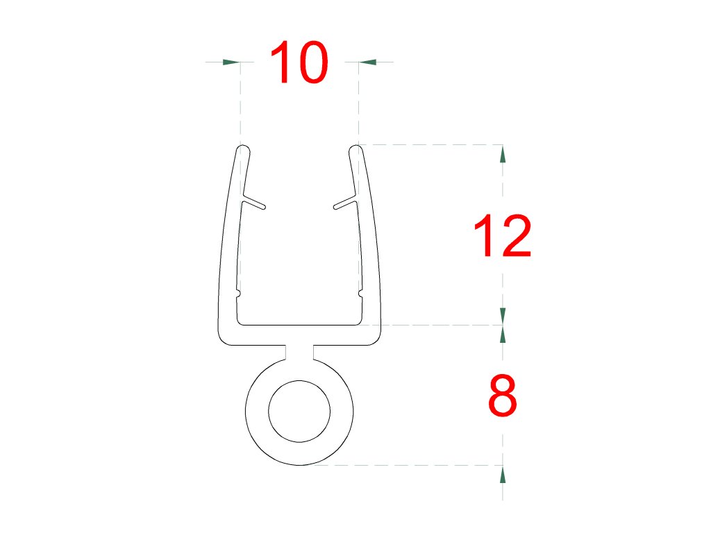 Plastové těsnění na sklo 10mm, mezi posuvné skleněné dveře a stěnu nebo podlahu, 2200mmDoplňkové parametry