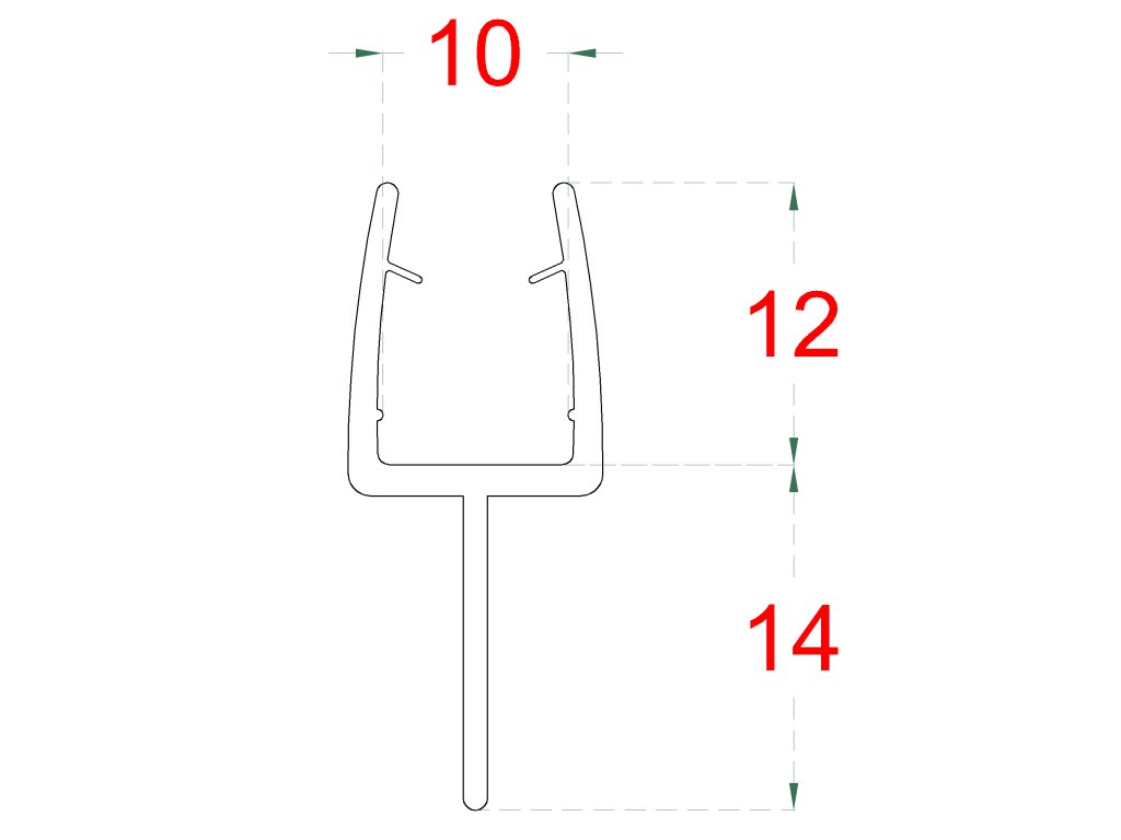 Plastové těsnění na sklo 10mm, mezi skleňené dveře a stěnu nebo podlahu, 2200mmDoplňkové parametry