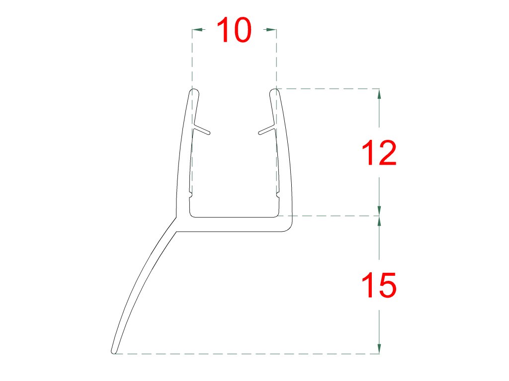 Plastové těsnění na sklo 10mm, mezi skleněné dveře a stěnu nebo podlahu, 2200mmDoplňkové parametry