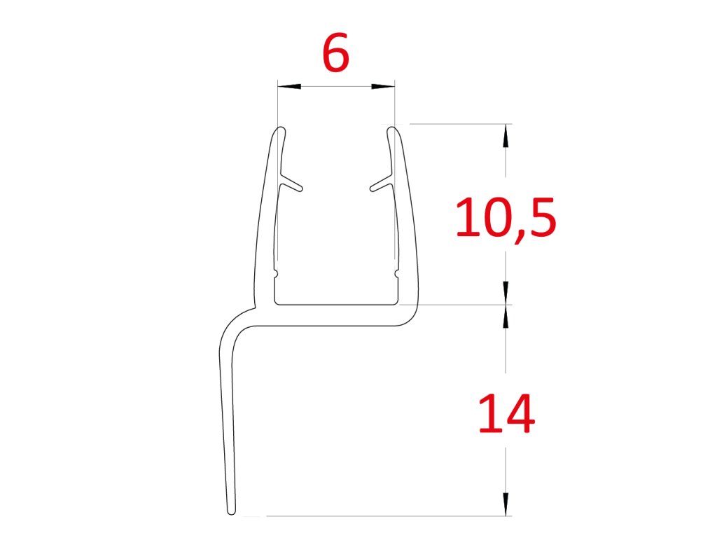 plastové těsnění na sklo 6mm, mezi skleněné dveře a stěnu nebo podlahu, 2200mmDoplňkové parametry