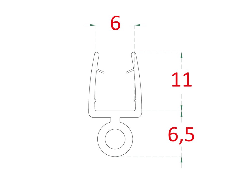 plastové těsnění na sklo 6mm, mezi skleněné dveře a stěnu nebo podlahu, 2200mmDoplňkové parametry