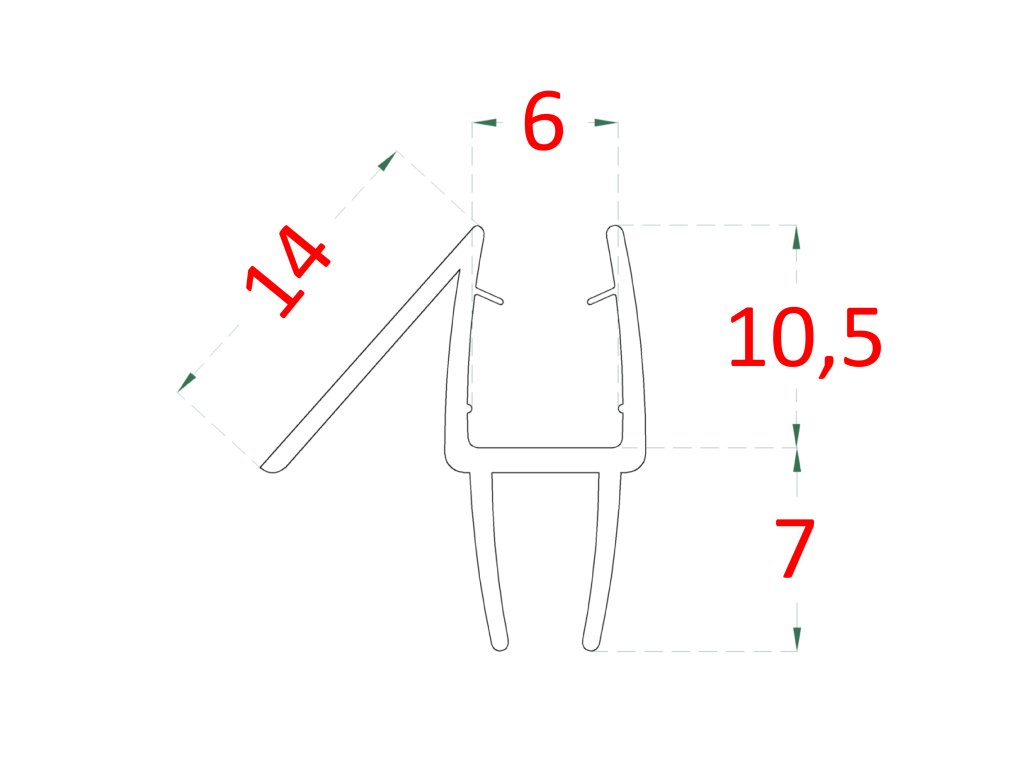 Plastové těsnění na sklo 6 mm, mezi skleněné dveře a stěnu nebo podlahu, 2200 mmDoplňkové parametry